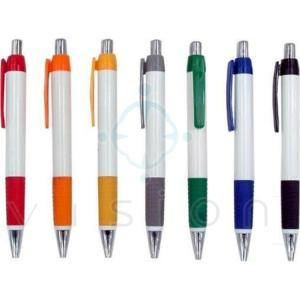 Caneta Plástica emborrachada com detalhe colorido