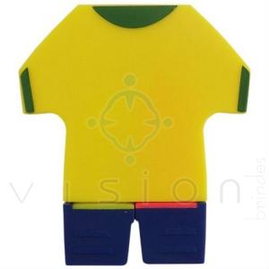 Marca texto em formato de camisa de jogador de futebol. Com marca texto rosa e amarelo.