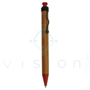 Caneta de bambu com clip de metal e click de plástico.