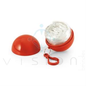 Capa de chuva em embalagem com mosquetão.