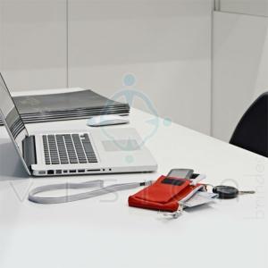 Chaveiro bolsa Com bolso para celular e cordão de pescoço.