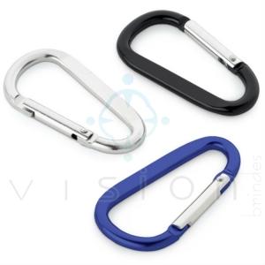 Mosquetão de Alumí­nio. Com área plana para gravação.