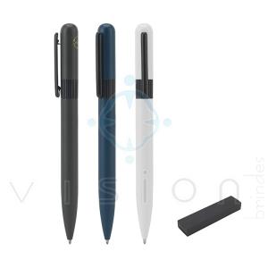 Caneta em metal 60% reciclado, com design arredondado para uma sensação de escrita harmoniosa.