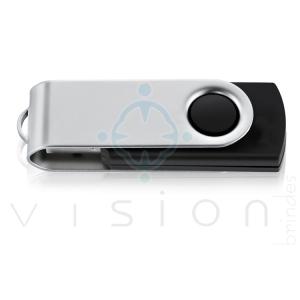 Pen Drive Giratório em metal com capacidade para 4GB.