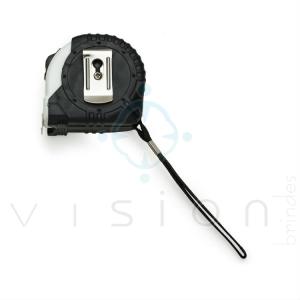 Possui trava, prendedor de metal em um dos lados e acompanha cordão de nylon.