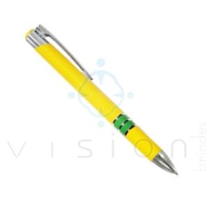 Caneta de Plástico nas cores Verde e Amarelo, com detalhes na cor prata