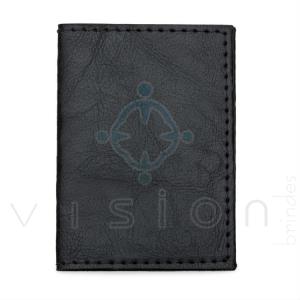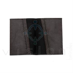 Porta cartão em couro sintético com quatro divisórias em diagonal.