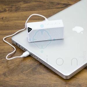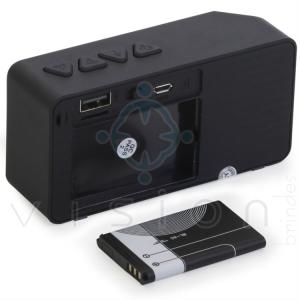 Caixa de som multimídia, rádio FM, alto falante de 80db, bluetooth 2.1, entrada USB, entrada micro SD, função atende chamadas, acabamento emborrachado, microfone integrado para chamadas de 10 a 15 metros.