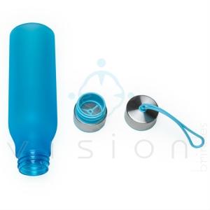 Squeeze plástico fosco de 600ml com tampa de peneira. Garrafa colorido fosco com tampa inox, possui peneira na parte interna e ambas tampas podem ser rosqueáveis. Acompanha alça elástica.
