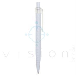 Caneta plástica inteira colorida com clip translúcido. Corpo inteiro de relevo com formato losango e clip plástico translúcido (pode ser removido para personalização). Aciona por clique.