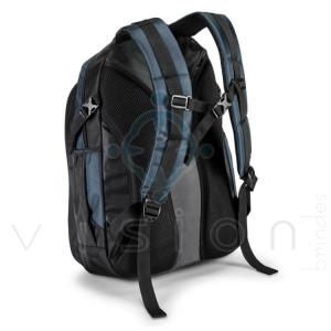Mochila para notebook. 1680D e 300D. Compartimento almofadado para notebook até 17. Interior forrado e parte posterior almofadada.Com bolsos frontais. Chapa metálica removí­vel com í­mã para fácil gravação. 330 x 480 x 145 mm | Chapa: 50 x 20 mm