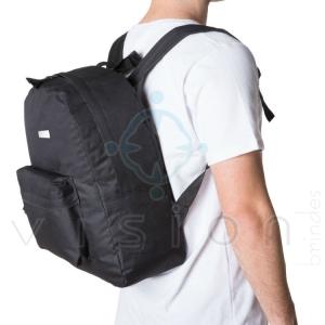 Mochila nylon 600 para notebook. Possui compartimento superior com bolso interno e bolso frontal. Zíperes com “pegador†de nylon, alças ajustáveis e alça de mão. Acompanha plaquinha metálica para personalização.