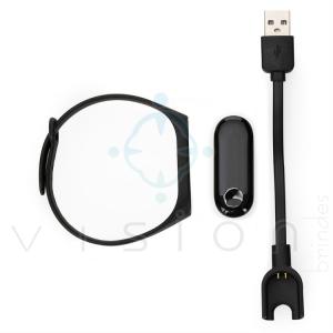 Pulseira inteligente M3. O smartwatch é um relógio fit com sensor que monitora suas atividades do dia a dia para o controle de sua saúde, tem funções como: pedômetro, contador de quilometragem, monitor de calorias gastas, monitor de frequência cardí­aca, monitor de pressão arterial, monitor de oxigenação sanguí­nea, alerta para localização de celular, alerta de mensagens, entre outros. Acompanha pulseira plástica para encaixe do dispositivo e cabo para carregamento.