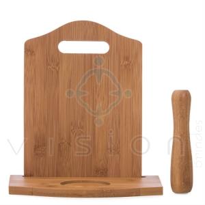 Kit caipirinha 3 peças com: tábua de corte, socador e suporte para copo. Material de madeira, tabúa além de possuir suporte para copo(não acompanha) também possui suporte para a tábua de corte.